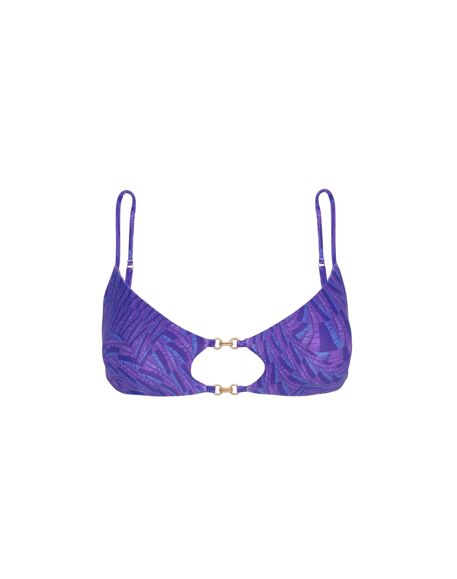 Relax on the sandy beaches of your tropical adventure in exquisite style sporting the dazzling Allie Top. This striking bralette is gracefully embellished with 24k gold-plated rings linked together to produce a delicate chain pattern, all shaped in our luxurious Brazilian fabric, giving you a seamless fit for effortless glamour.