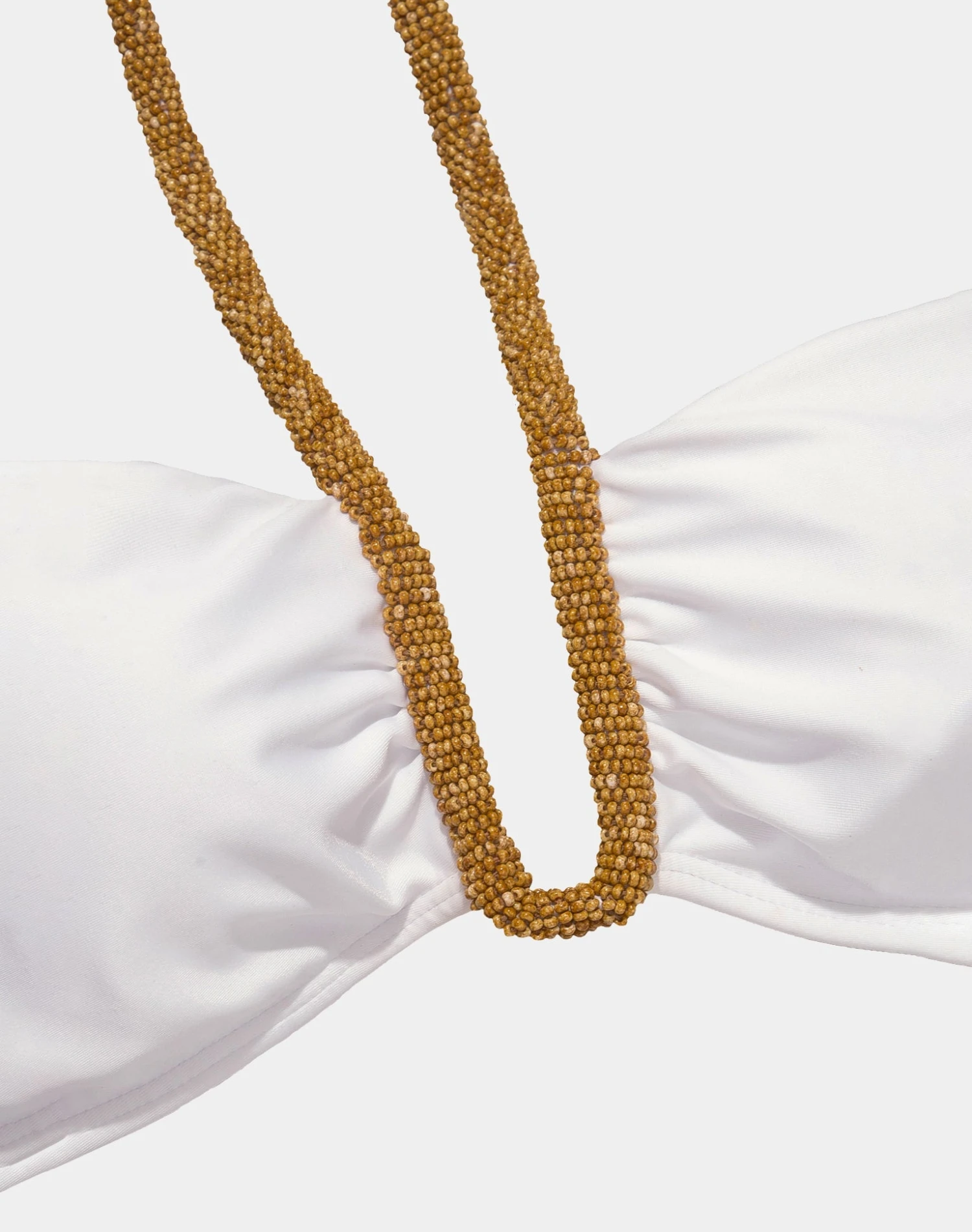 Dripping in details, the Ayana Carol Top will make you shine brighter than the sun on your favorite beach – this modern detail-centric silhouette is crafted in our renowned Brasilian lycra and features a plunging neckline as well as a hand-embellished sequence trim that elevates your seaside attire.