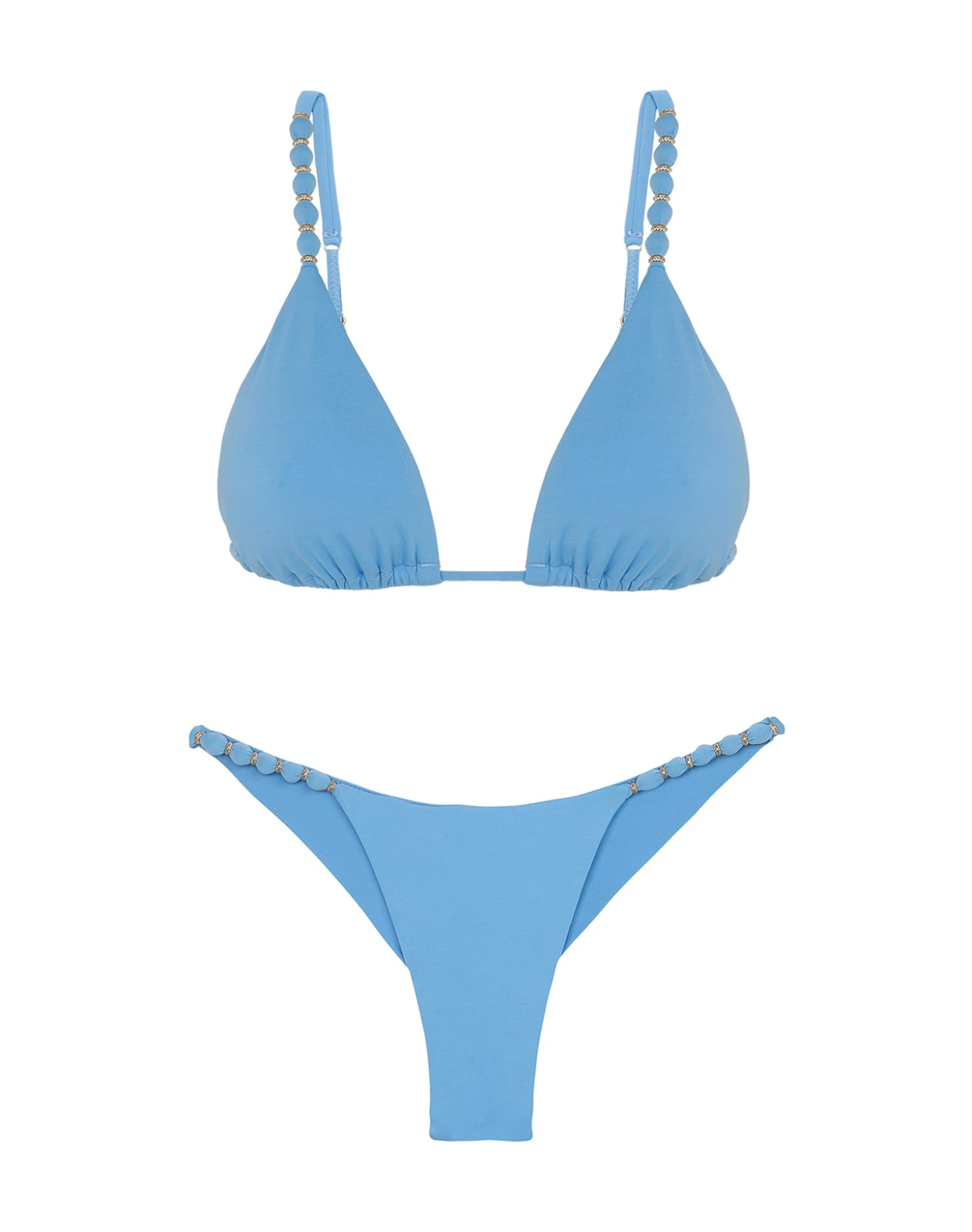A ViX staple season after season that never goes out of style. This classic bikini bottom combines elegance with hand-crafted fabric beading and 24k gold accents, all in a unique textured fabric for the ultimate statement piece.