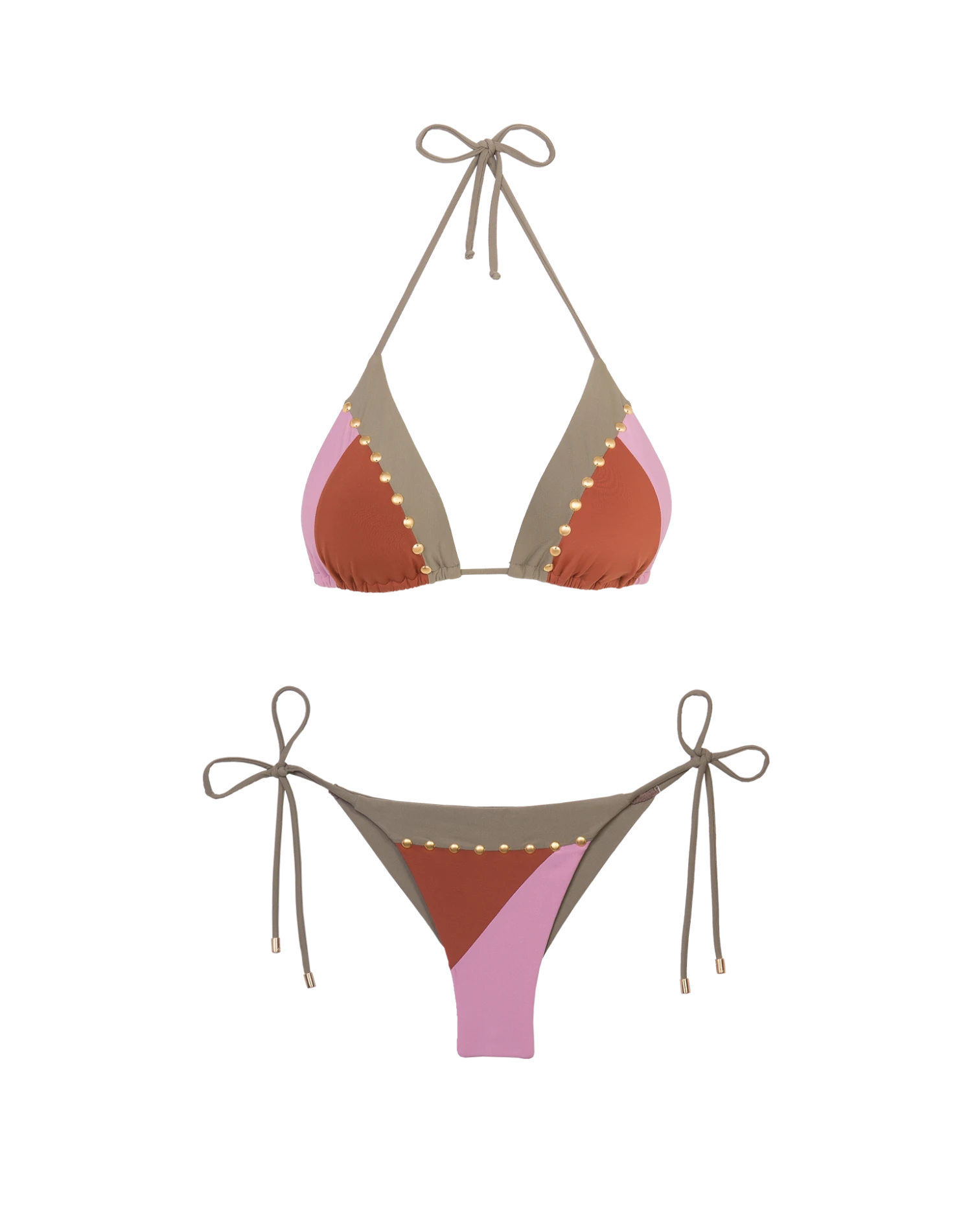 Revamping this ageless tri top with 24k gold studs will have you feeling confident and stylish in all your fun in the sun days.