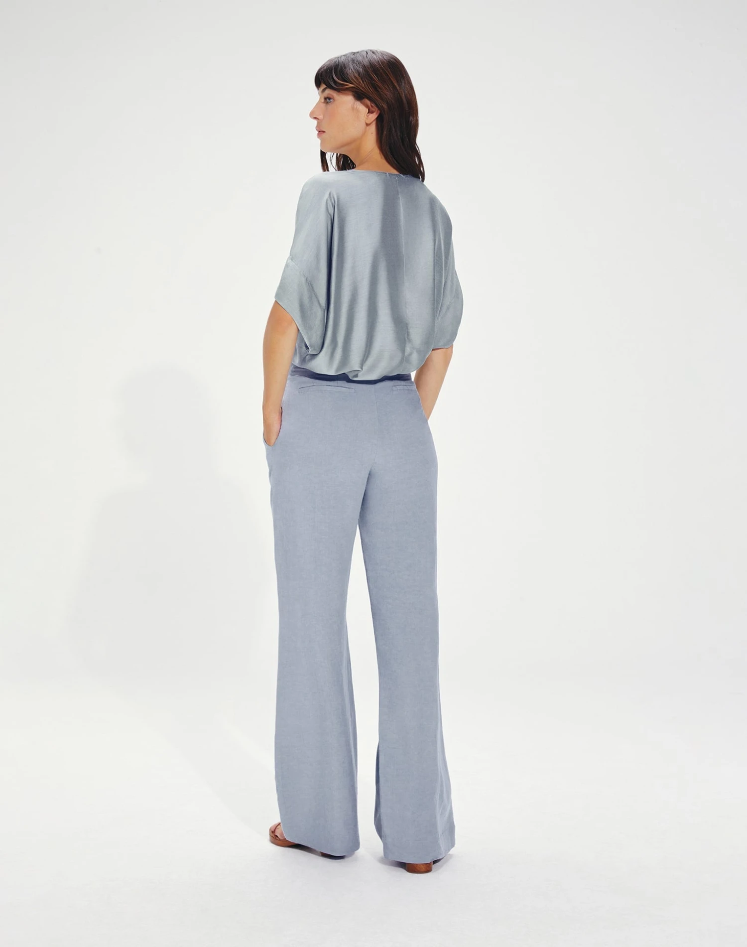 Multi-faceted blouse can be paired with the Victoria Pants and sneakers for a set daytime look or with the Lana Detail Midi Skirt, heals, and a clutch for a sophisticated date night outfit.