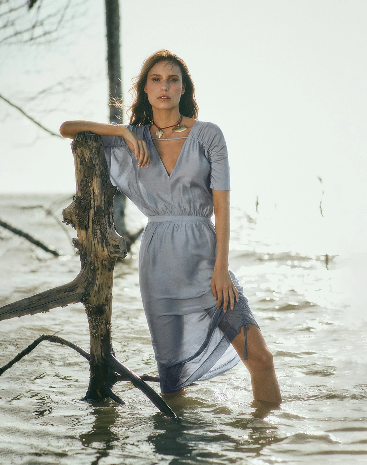 Charismatic and stylish, the Ciara Detail Mid Dress was made to exude femininity and glamor. This midi silhouette features a bohemian relaxed cut in a linen blend fabric, a sash, and adjustable rushing; a versatile piece for an effortless put-together look.
