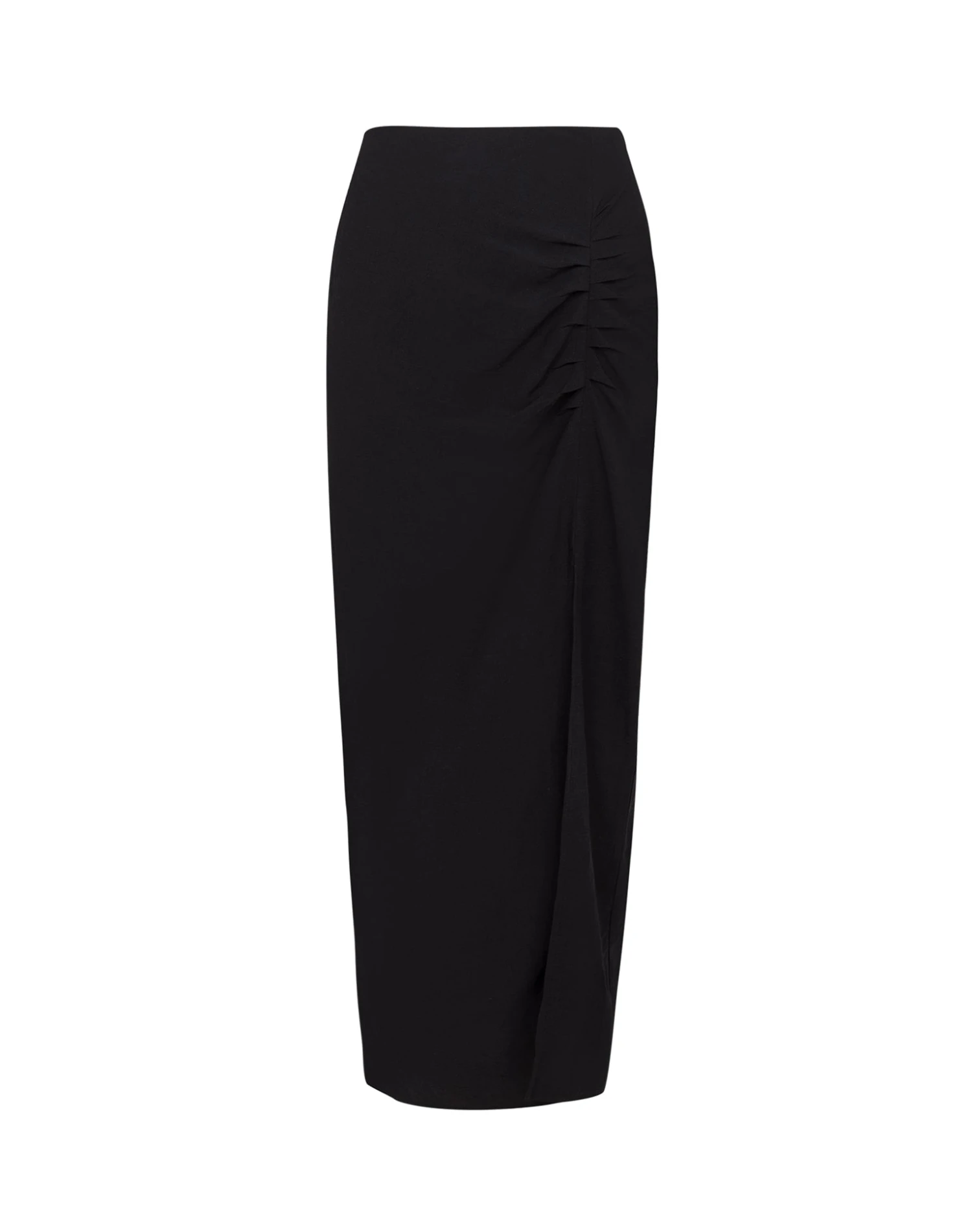 Feel confident, stylish, and sexy with the Clara long skirt; its high side slit and ruching detailing will hug your curves making this a staple for all your travel adventures.