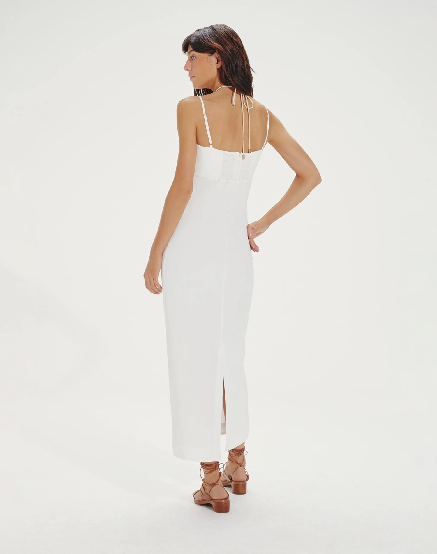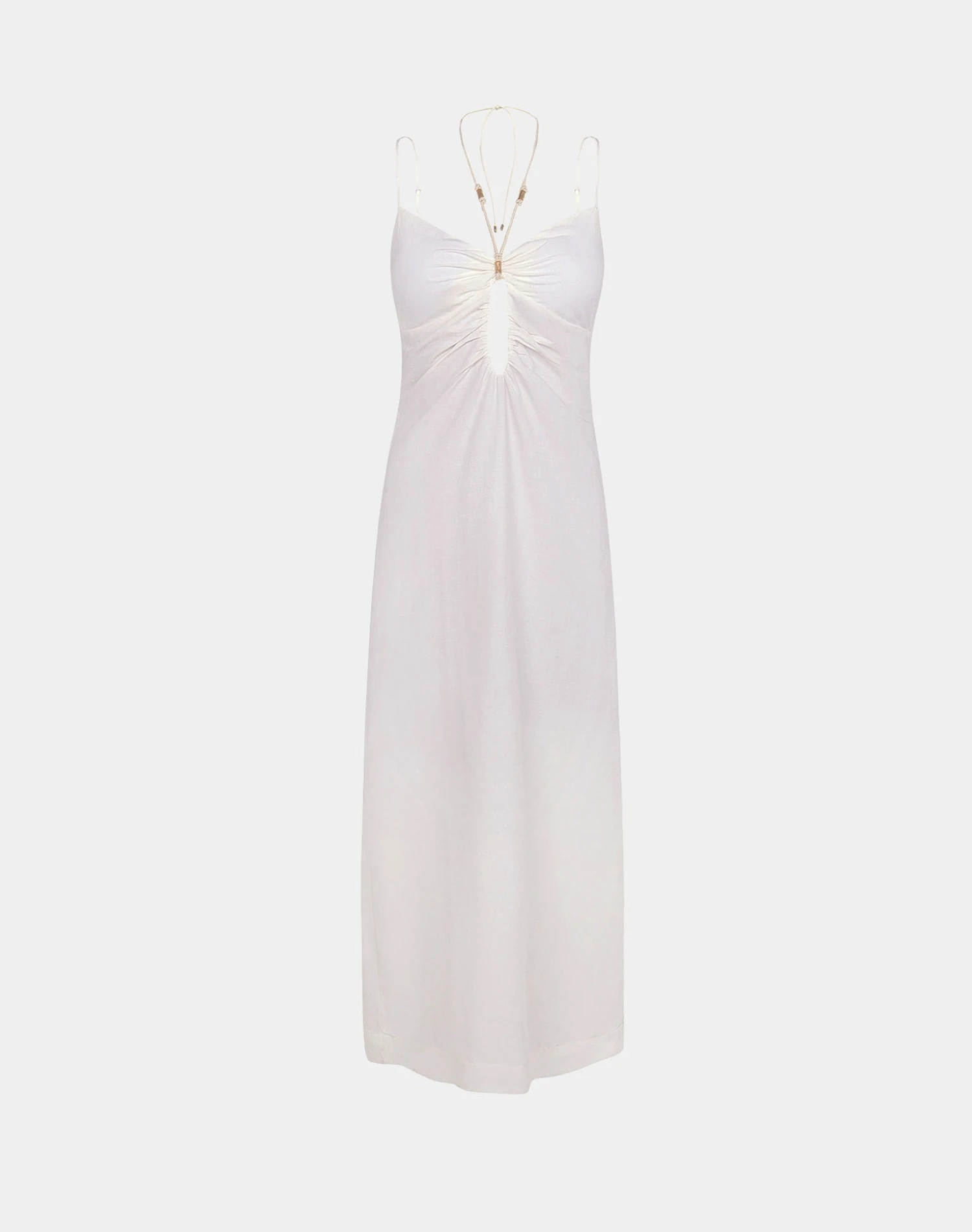 - Artisanal stretchy rope-like cording on halter neck ties