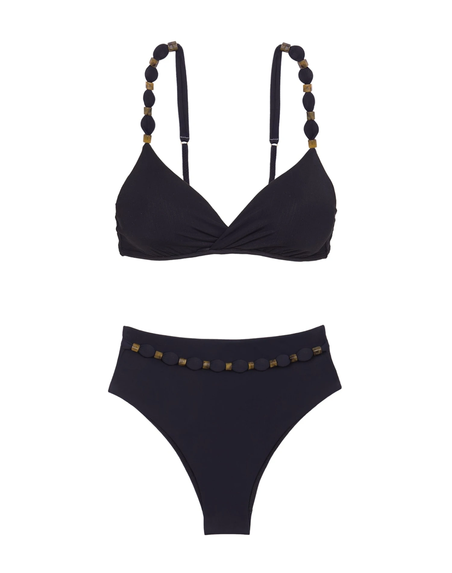 Bring on the waves in this retro-inspired high-waisted bottom fit for lounging around the pool or hitting the beach in style. The Dora Hot Pant is shaped in our exclusive Brasilian lycra, a fixed hand-crafted belt made from oval fabric appliqués and tortoiseshell resin accents that add a layer of sophistication to your swimwear.