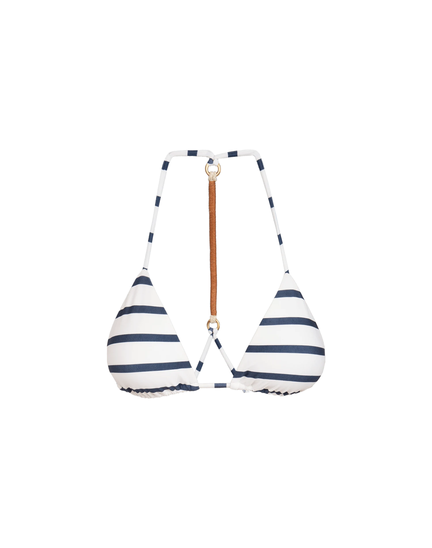Contemporary tri top that is sure to become a staple in your swimwear collection; its hand-crafted details will have heads turning to catch a glips of your spectacular attire.