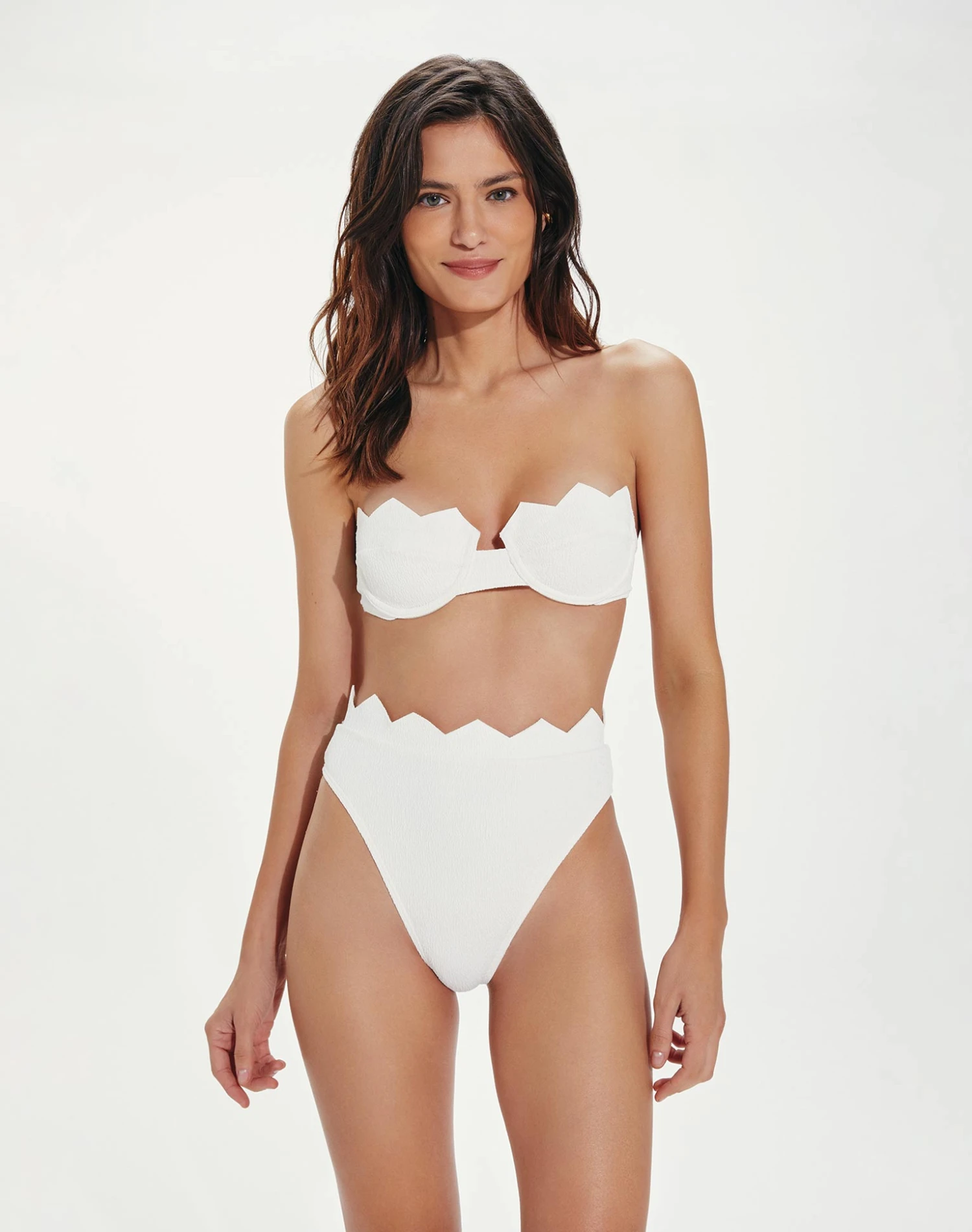 Retro inspired high-waisted bottom in our exclusive scale texture fabric Add some edge and luxury to your swim attire with the perfect mix between comfort and style.