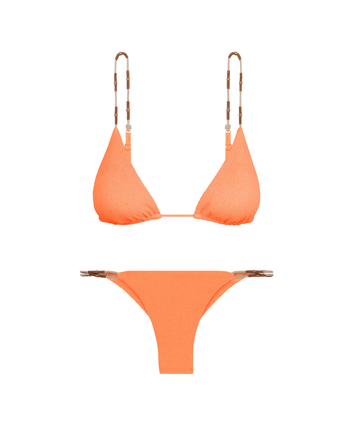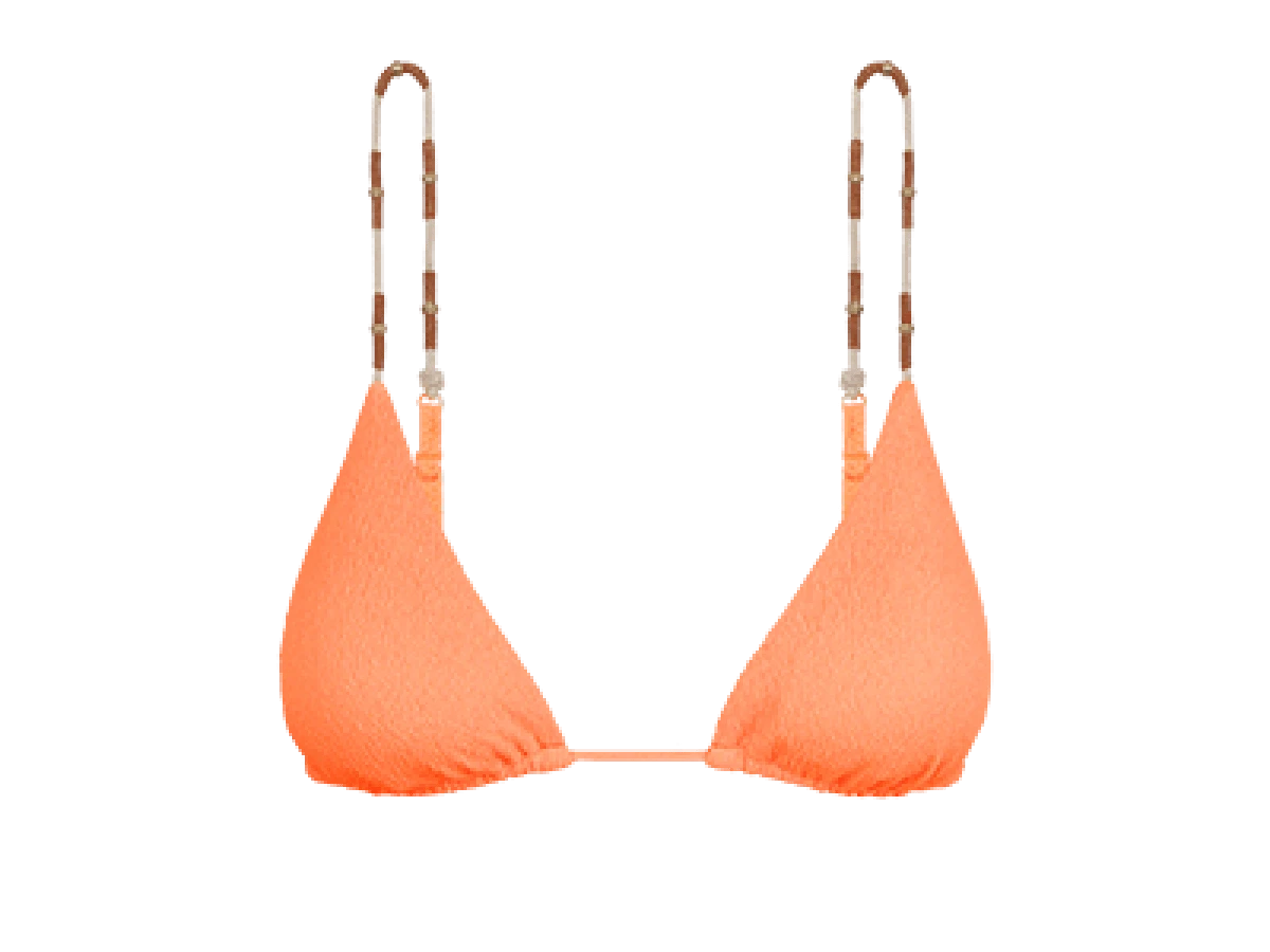 This Triangle style has a tie back and classic parallel straps for maximum adjustability so you can find the perfect fit. The Laura style also includes beaded strap accents and exclusive opaque crepe texture adding linen and cotton features to it.