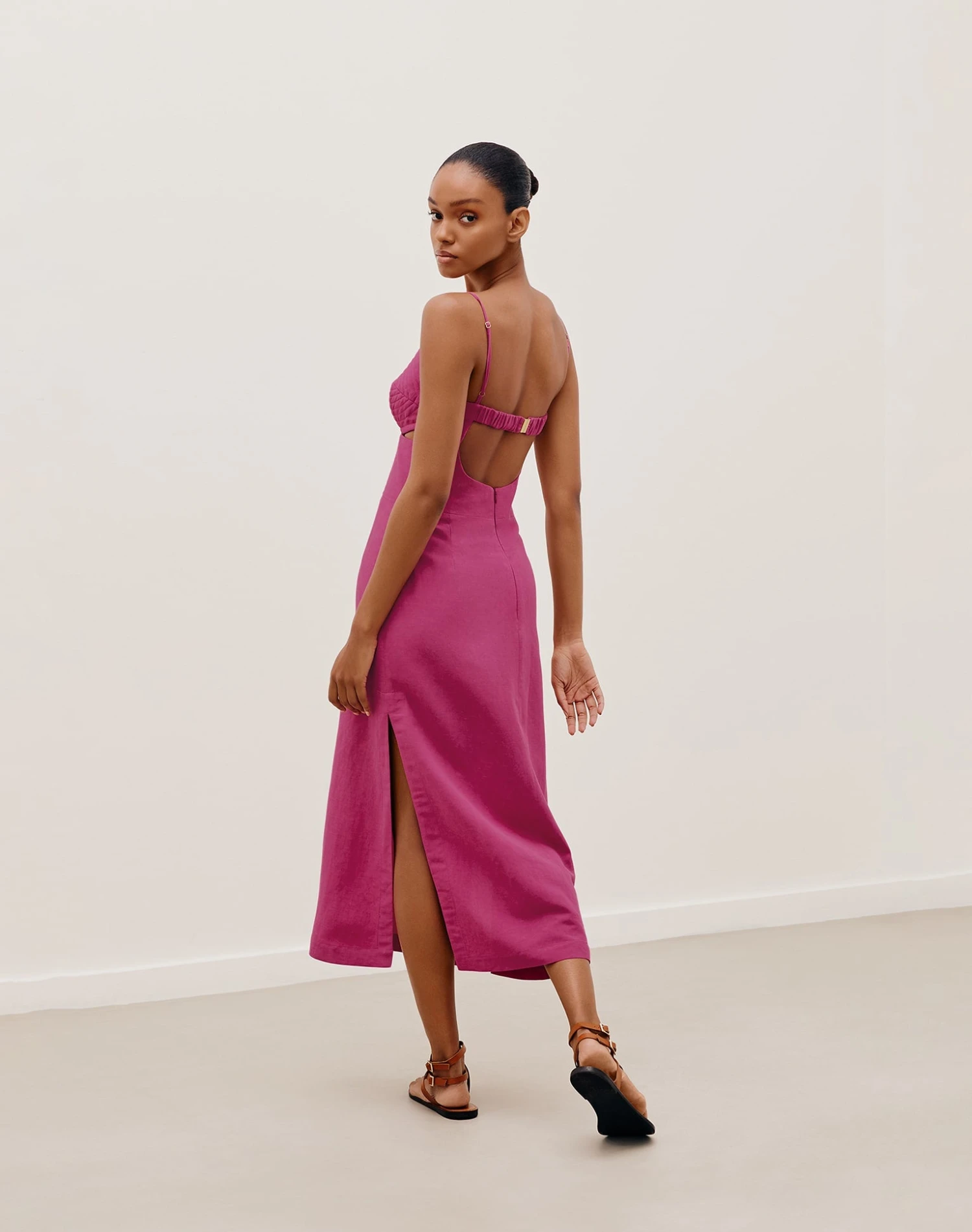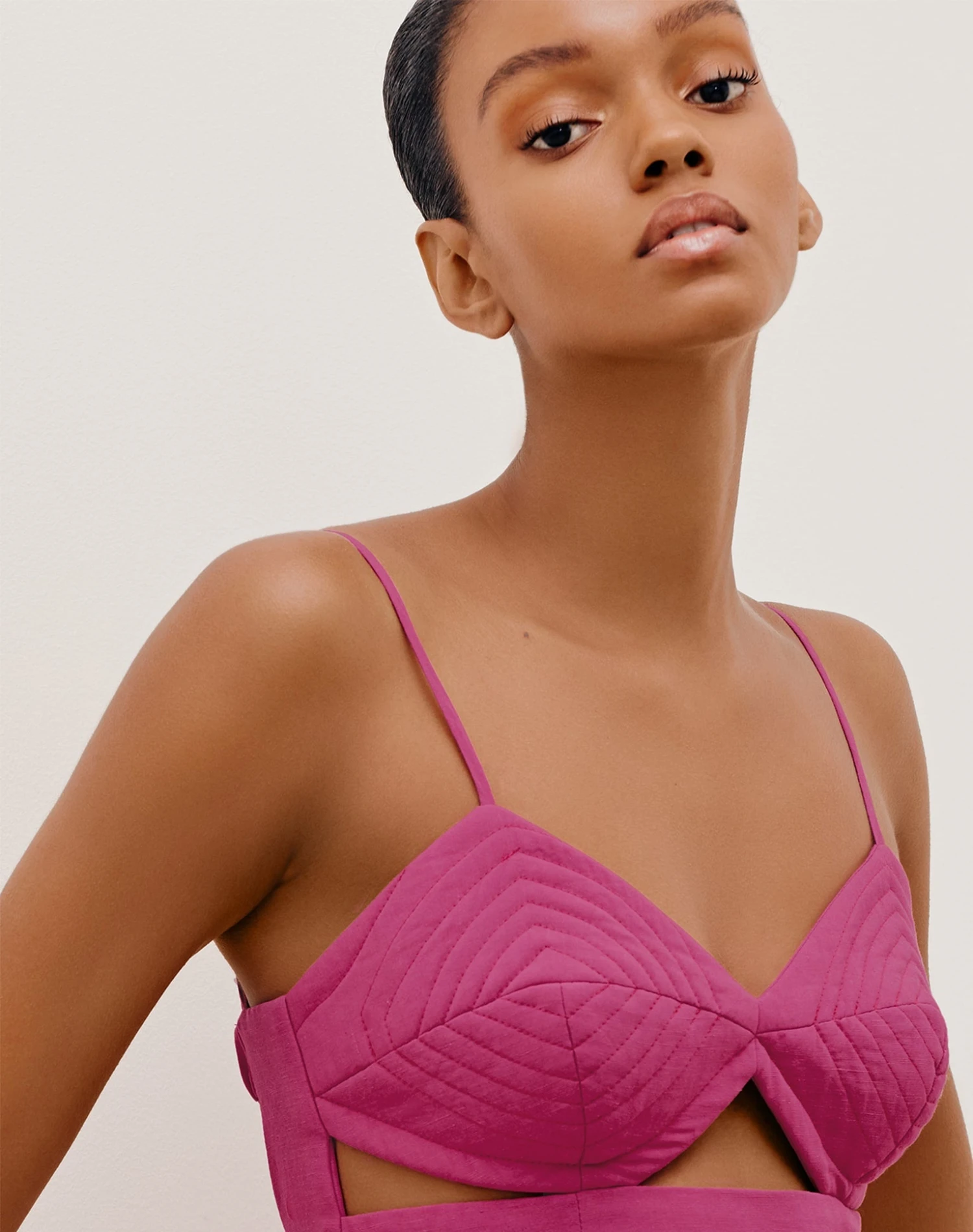 Treat yourself to upscale glamour in the Francis Midi Dress, an effortless trend creator fit for a fashion innovator like you. An A-line dress design shaped in a breezy and beautiful linen blend fabric, with eye-catching cut-outs and a quilted bust that makes this piece as unique as you.