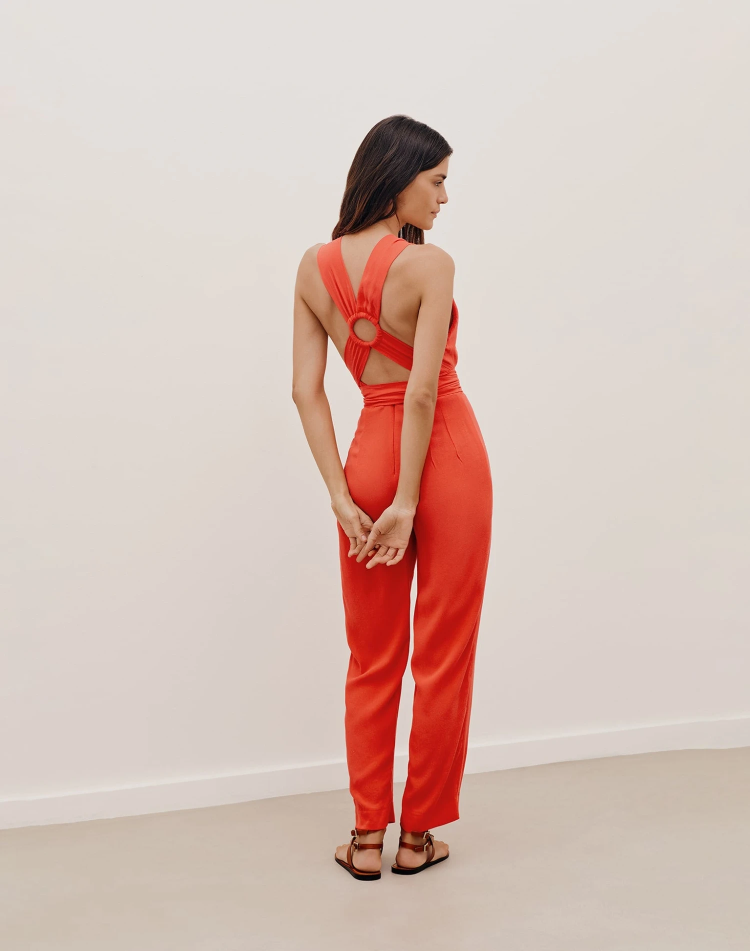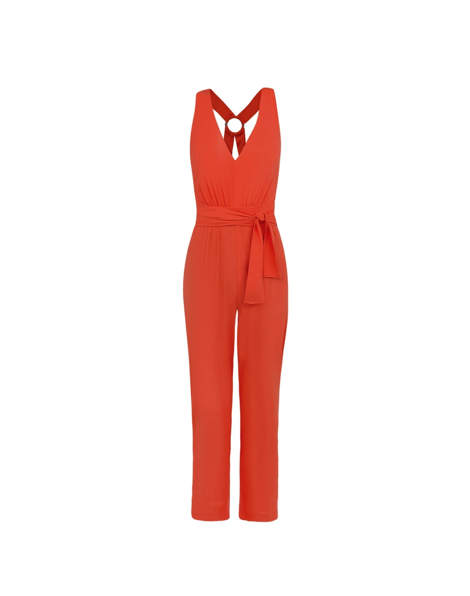 Upgrade your vacation style in a sun flash with the Hannah Detail Jumpsuit, a relaxed, sophisticated silhouette designed to keep you elegantly fashioned on all your destinations. This one-and-done stunner features an alluring V-neck and wide straps that cross over the open back and tie into a self-covered fabric loop with long ties that double as a belt by adjusting to your frame for added glamour.