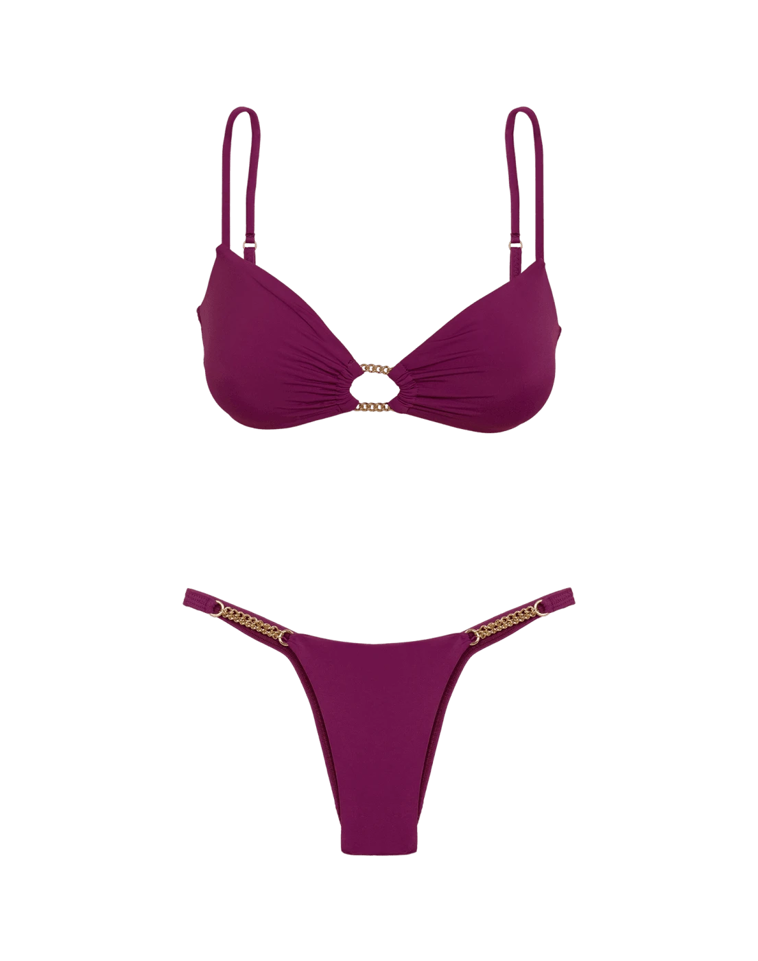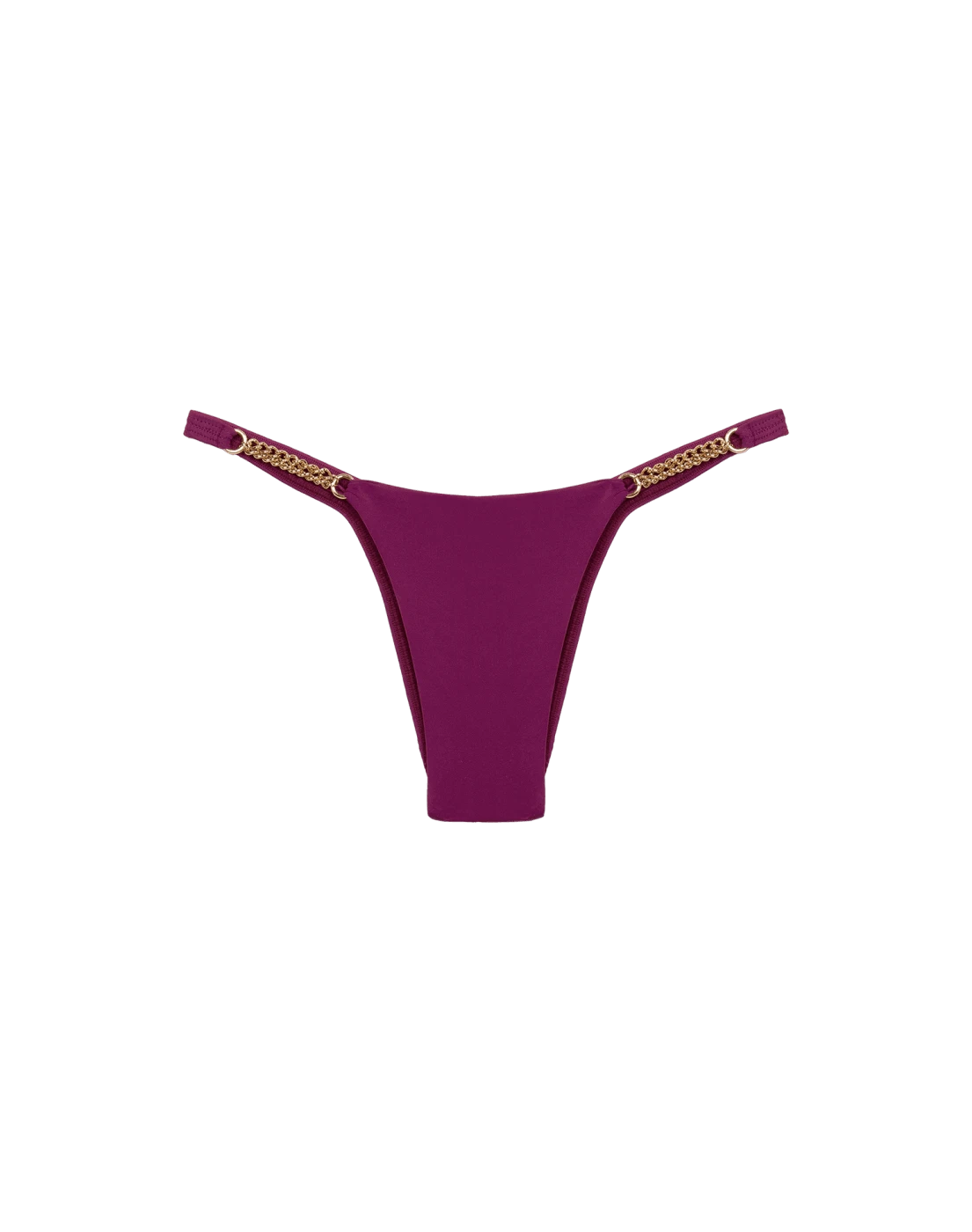 The traditional bikini bottom is taken to the next level with chain link detailing, making the perfect bottom for a subtle statement piece.