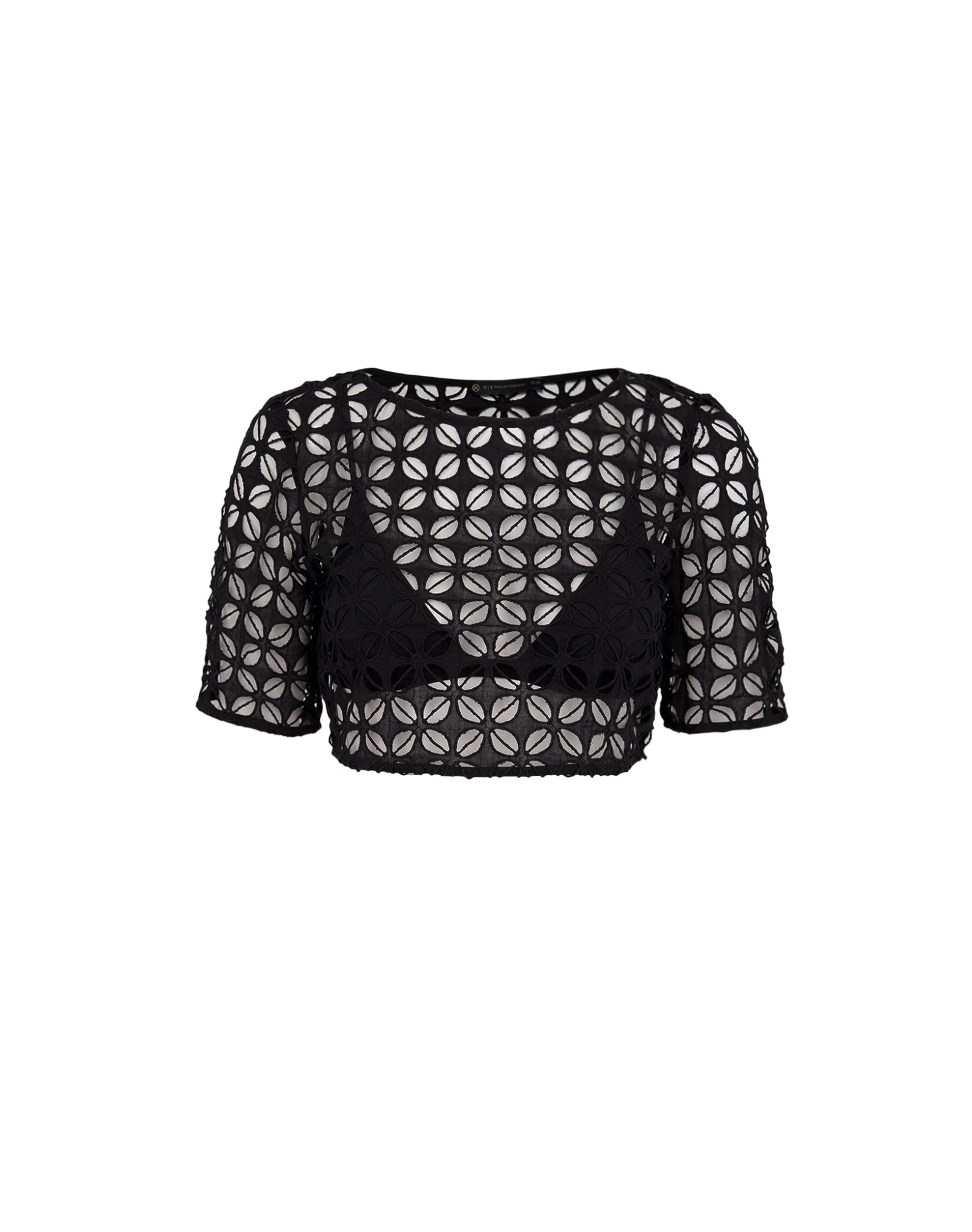 Start your day on the right side of fashion in the Jennie Short Sleeve, an upscale blouse designed in a rich eyelet fabric that will pair with almost everything in your wardrobe. This versatile and elevating piece is complimented with a detached padded bralette lining with adjustable straps and a gold metallic clasp closure for a comfortable fit under a statement-making eyelet overlaying top.