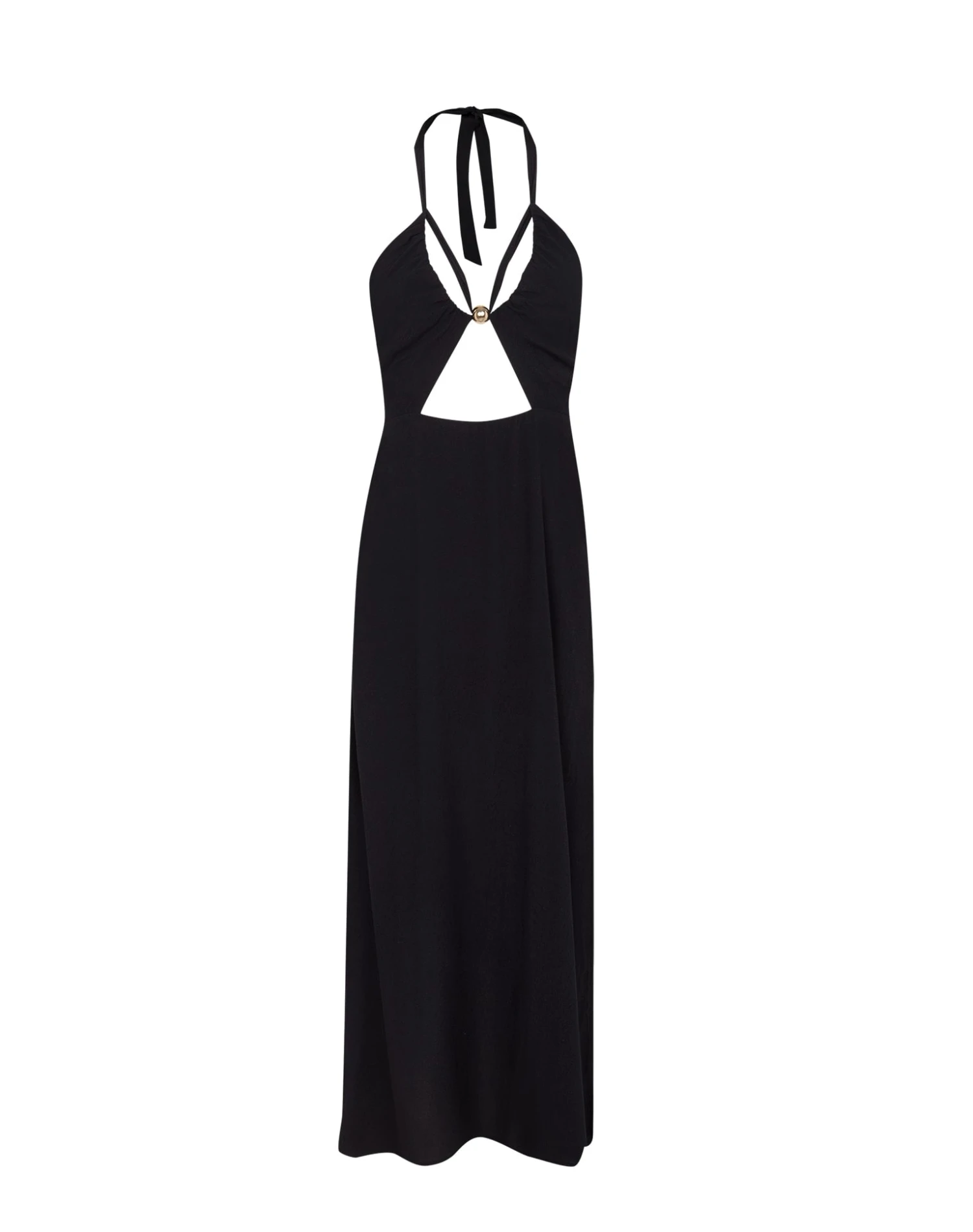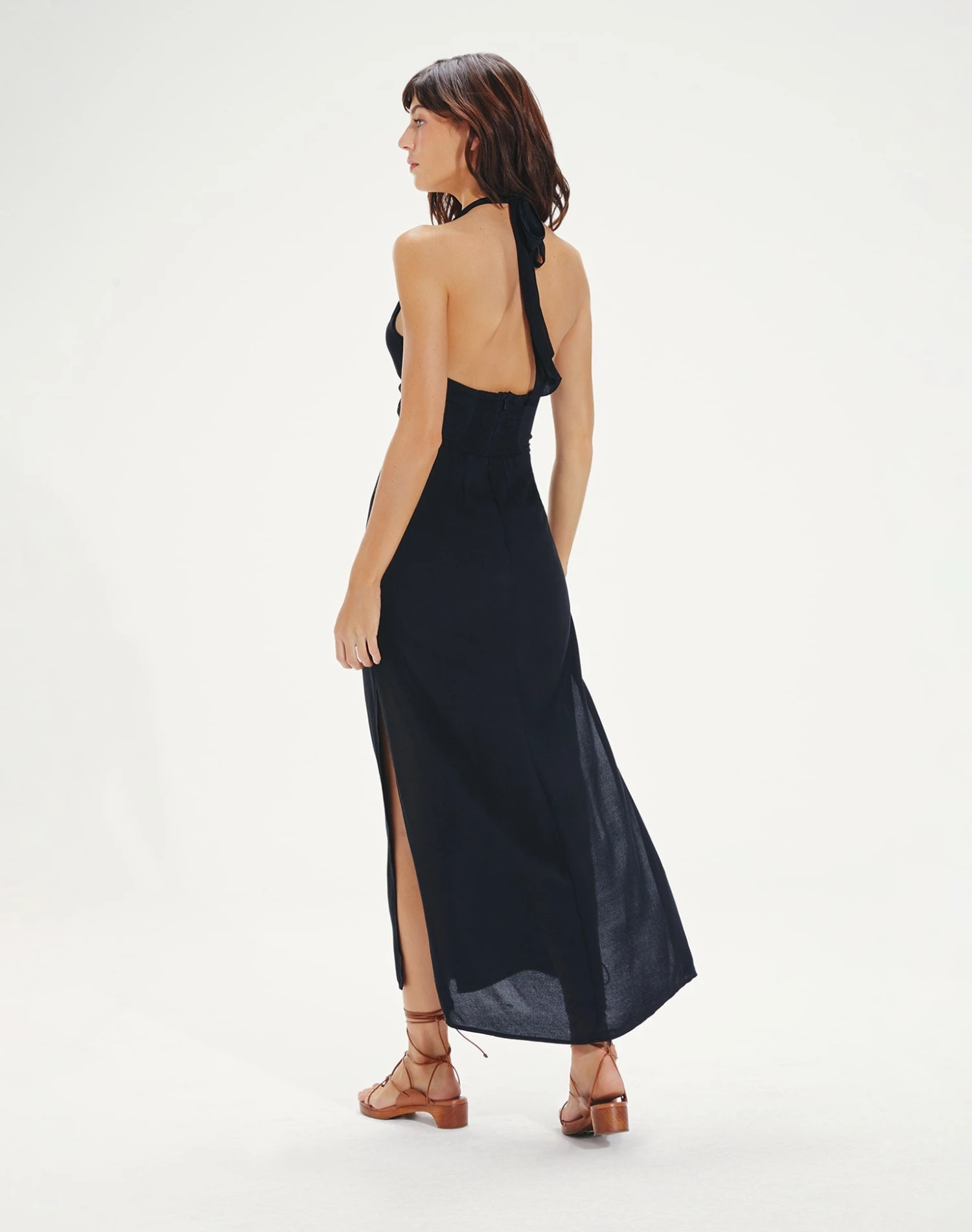 Captivate onlookers in this alluring silhouette designed to bring forth your femineity and sensual side. The Lidia Detail Midi Dress features a cut-out bodice in a linen blend fabric, an adjustable neckline, and a 24k gold bead embellishment that adds a layer of luxury and sophistication.