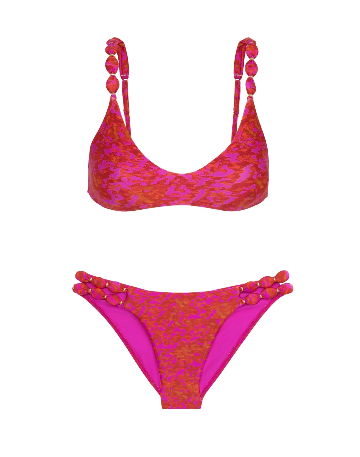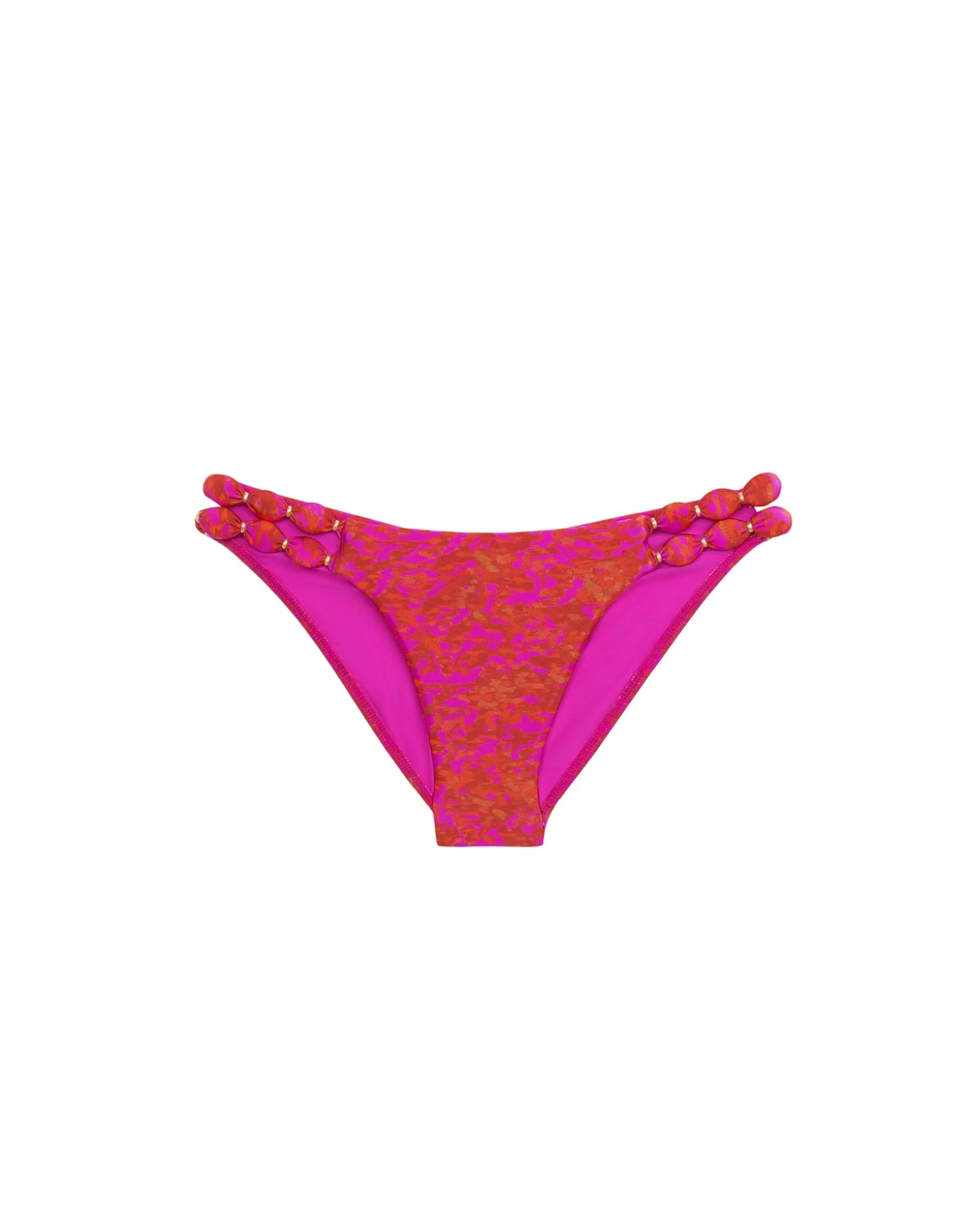 Refresh your swimwear by adding the Lizzy Bottoms, a classic full-length bottom that evokes luxury with hand-embellished accents that will make you shine. Designed in our renowned Brasilian lycra with self-covered oval appliqués and complemented with 24k gold charms ideal for a fashionable day in the sun.
