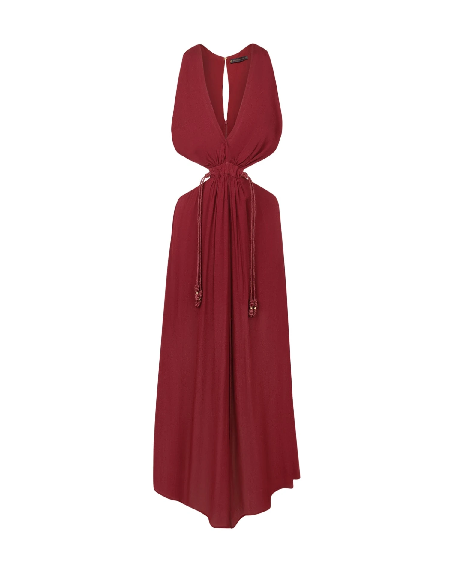 Make memories in picture-perfect style wearing the Nayara Long Dress, a chic maxi with a curve-hugging silhouette that will have you glistening in glamour. Bohemian-inspired design with an alluring feel fashioned in a lightweight silk blend fabric that is accentuated with waist cut-outs and an adjustable bungee cord knotted tie with gold charms, a stunning design for a confidence-boosting wear.