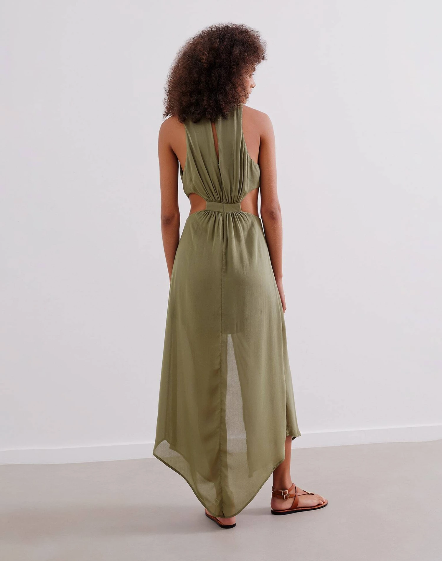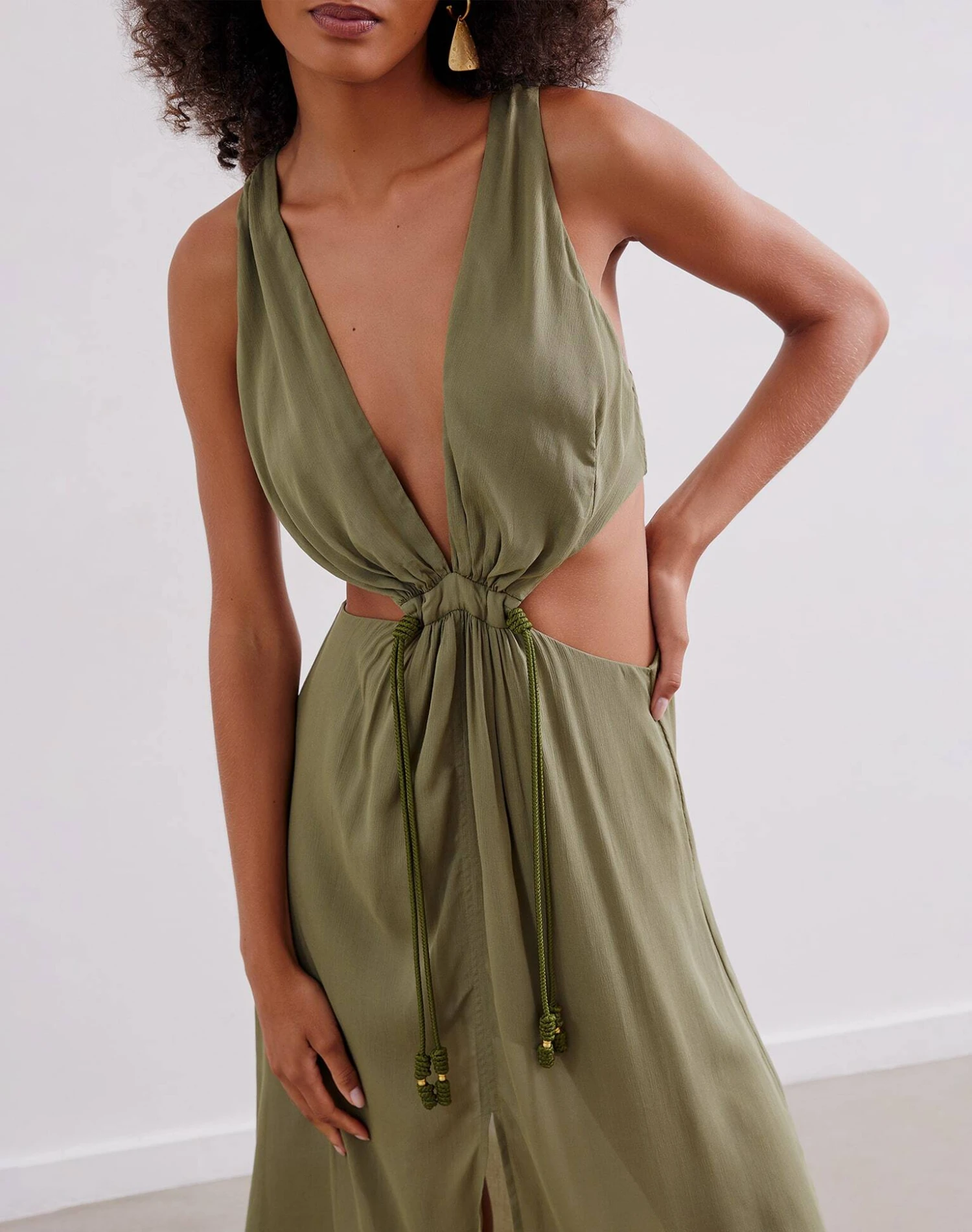 Make memories in picture-perfect style wearing the Nayara Long Dress, a chic maxi with a curve-hugging silhouette that will have you glistening in glamour. Bohemian-inspired design with an alluring feel fashioned in a lightweight silk blend fabric that is accentuated with waist cut-outs and an adjustable bungee cord knotted tie with gold charms, a stunning design for a confidence-boosting wear.