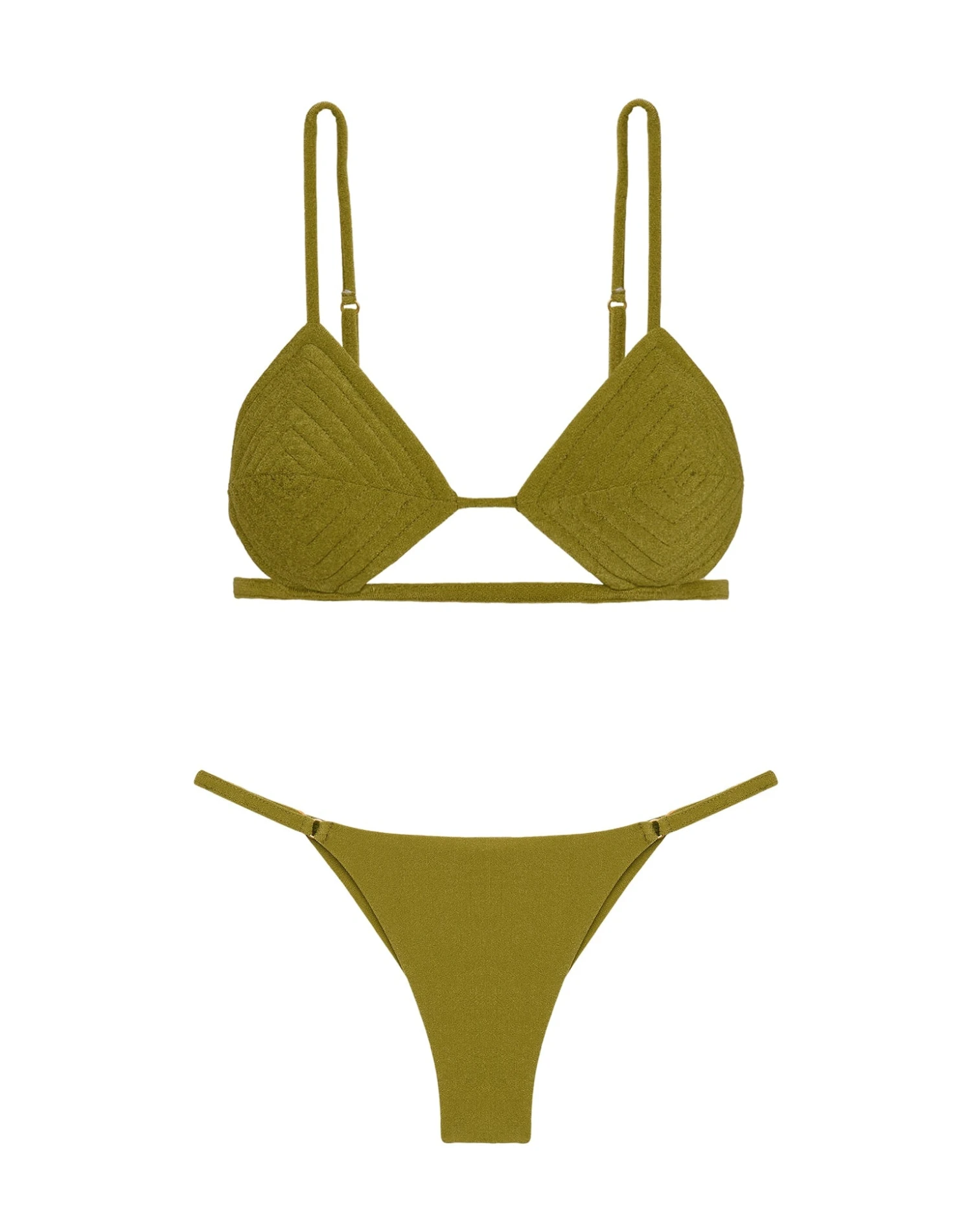 Bear it all out in a sassy yet classy minimal coverage bottom with delicate side straps designed to accentuate your curves and add a touch of gleaming allure. This little number is fashioned in luscious shimmer lycra with an adjustable fit ideal for catching rays under the tropical sun.