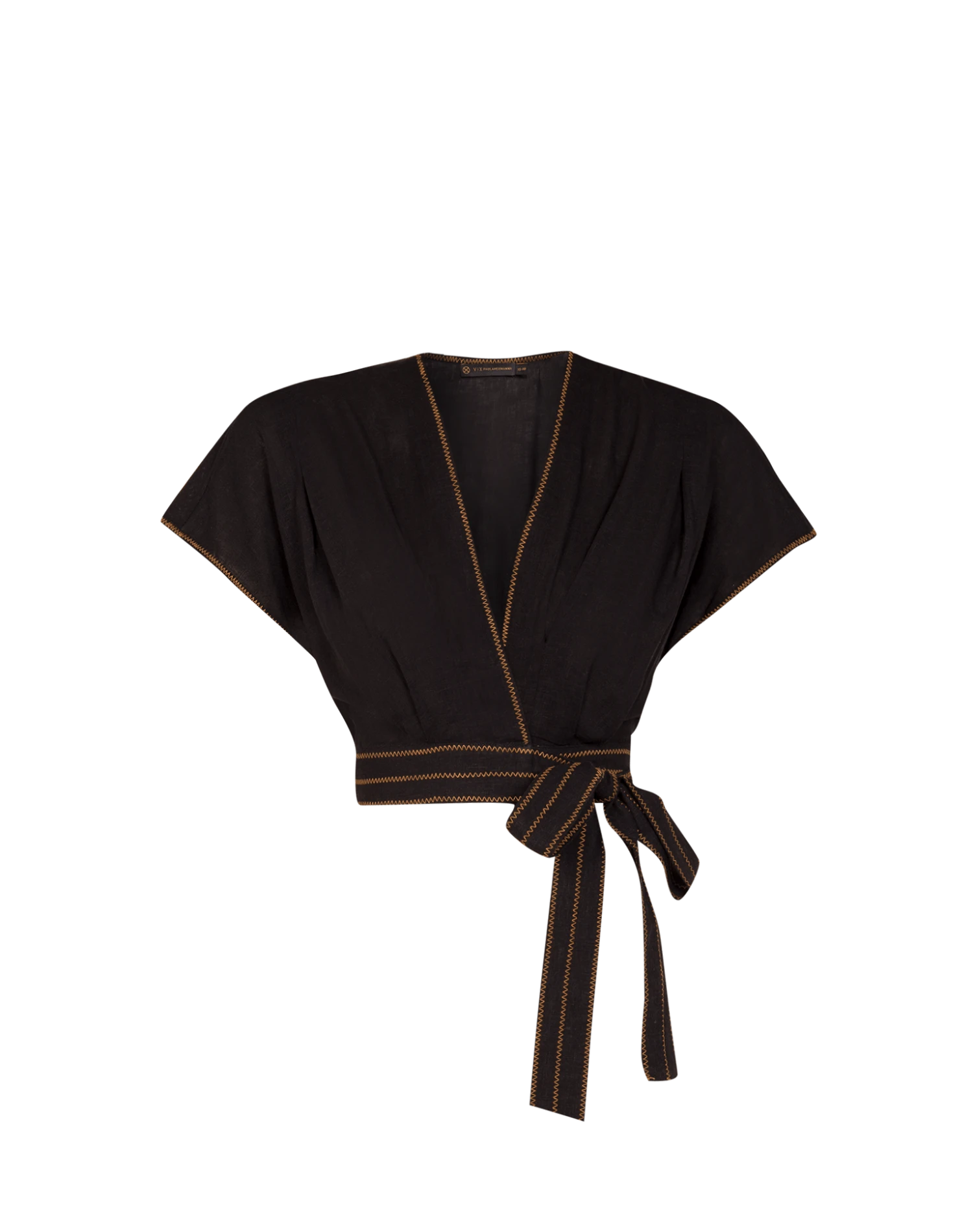Complement with Vicky Long Skirt or high-waisted pants and strappy heels.