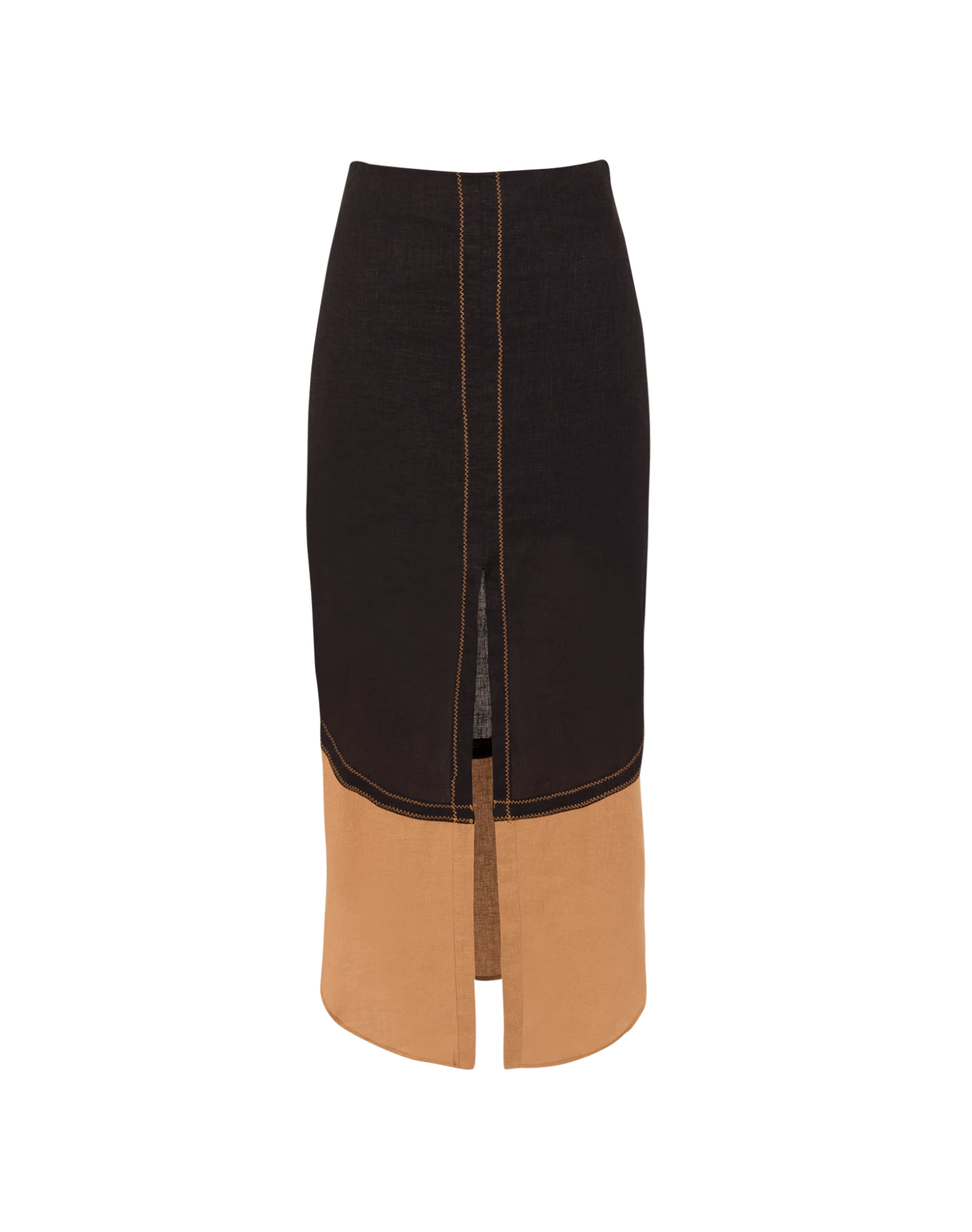 Strikingly bold midi skirt delicately hugs your curves creating an eye-catching style.