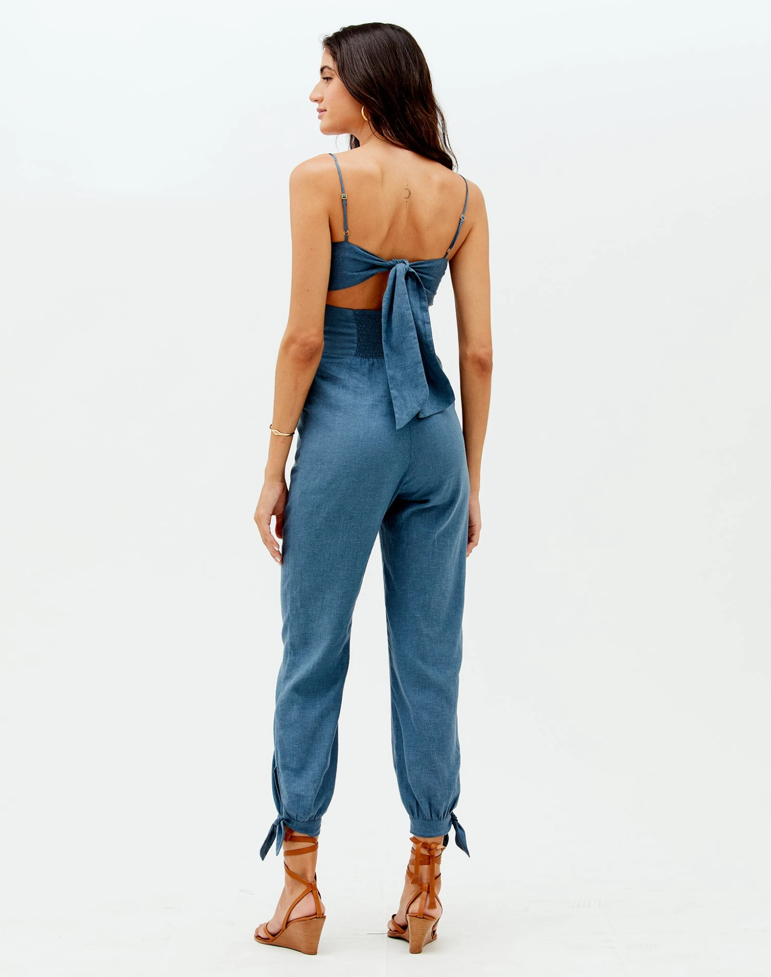 - Ties at the ankles